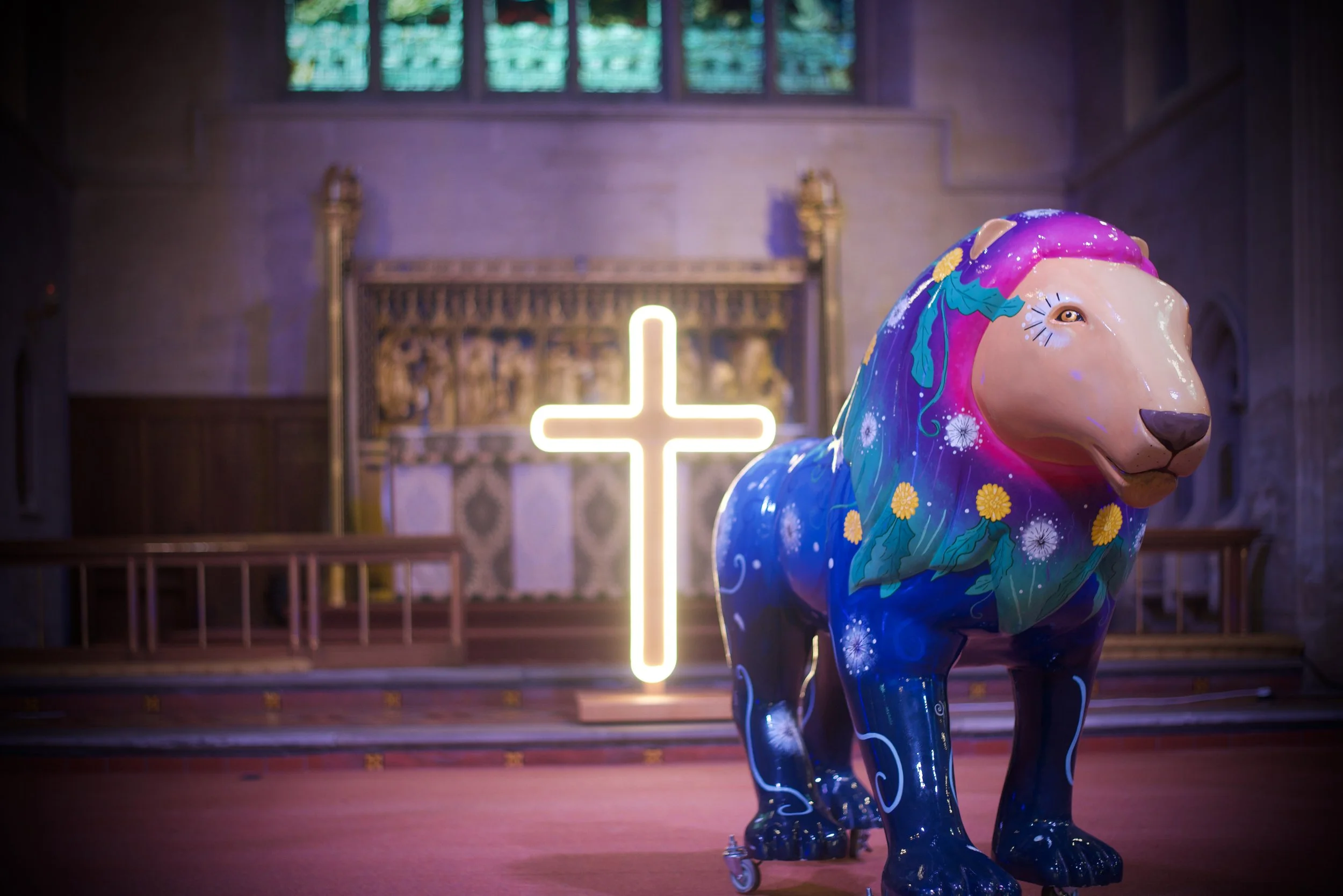 Before being adopted into the St. Catharine’s Church family, Daniel began life as ‘Lion’s Breath’, a sculpture painted by Helen Naylor for the Cheltenham and Gloucester Hospitals ‘Lions at Large’ trail.